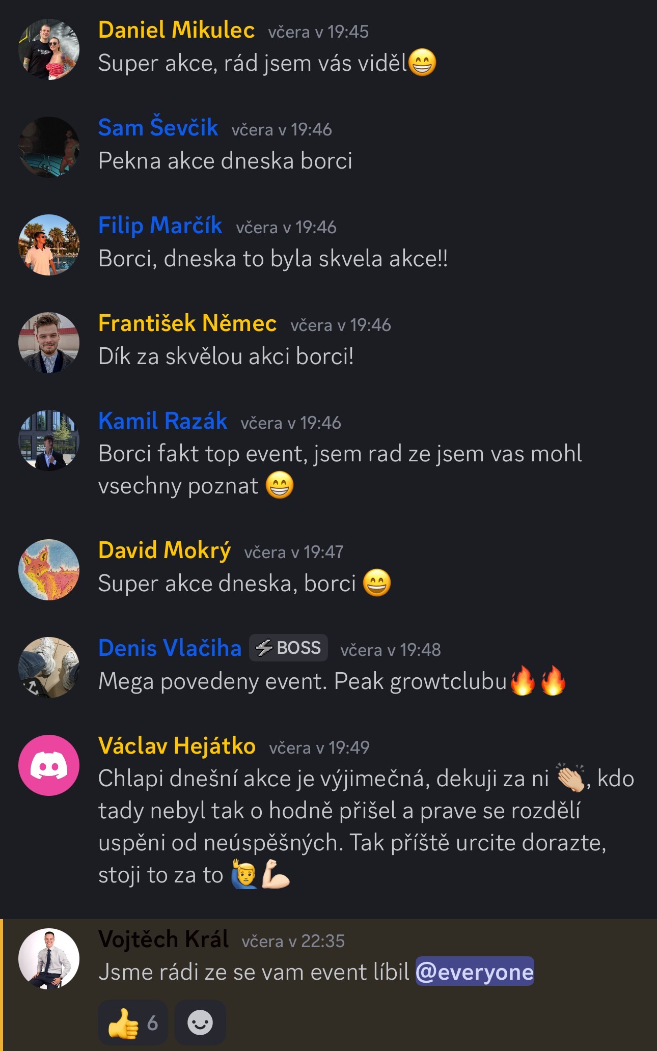 Ihned po přijetí Vás propojujeme s klíčovými lidmi — těmi, kteří mohou mít okamžitý vliv na tvůj růst. (Tyto spojení pečlivě vybíráme na základě informací, které nám poskytneš.)